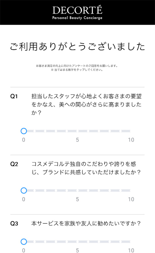 今後のサービス向上のためお客さまアンケートにご協力ください。