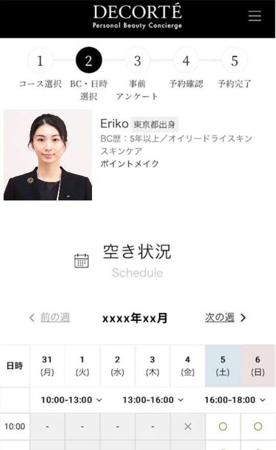 お好みのビューティコンサルタントを選び、ご都合の良い日時を選択します。