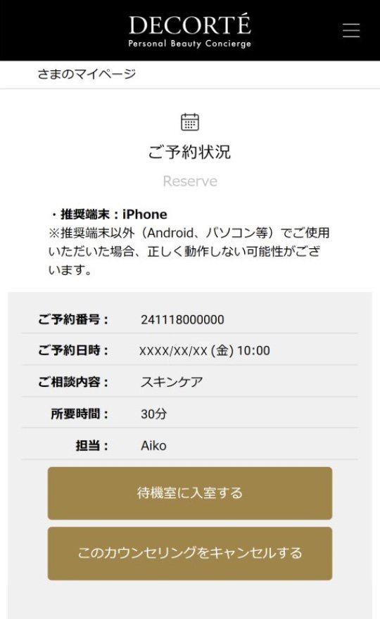 コスメデコルテ パーソナルビューティコンシェルジュマイページにログインします。